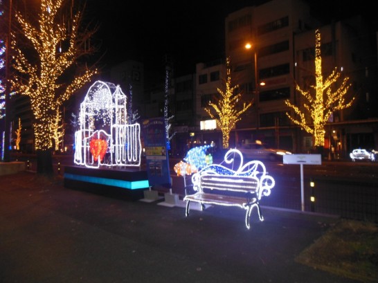 帰りに花園町のイルミネーションを見た(写真)。寒い夜でも心を温かくしてくれる。