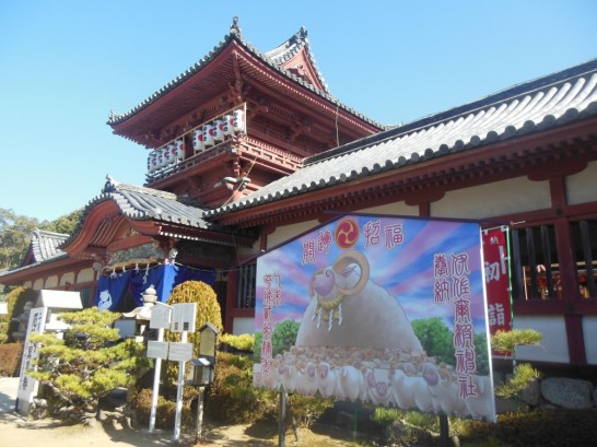 神社の横には大きな絵馬が飾られていて、今年の絵馬は「ひつじ」。一頭の大きな羊の前に数多くの羊が居る。私は寝つきがいい方なので羊を数えたことはないが、これだけに羊が居ればどんな人でも眠られそうな気がした。