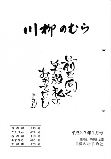 ひろみさんから連絡がありブログ拝見しました。川柳のむらの柳誌を取り上げて頂きありがとうございます。表紙がたまたま私の拙句で面はゆいというか恥ずかしい感じです。今年も宜しくお願い申し上げます。