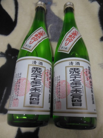 毎年この時期になると、酒屋をやっている知人のTさんから「今年も立春朝搾りはいかがですか」と電話が掛かってくる。先日その電話が掛かってきたので二つ返事で「今年もお願いします」と返事しておいたら、昨日の夕方「立春朝搾り」が2本届いた。節分が終わり、立春が終わるといよいよ春という気がする。わくわくしてくる。ラベルにも「平成二十七年乙未二月四日」と書かれている。年男の私にとっても嬉しい限り。
