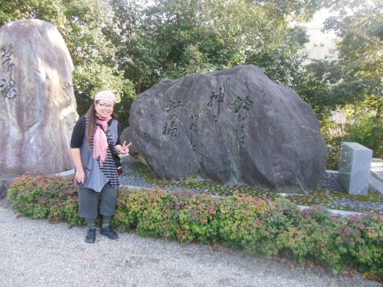 たけしさんの句碑の前でパチリ!!!!。