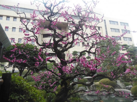 会場の愛媛県生活文化センターの梅は満開になっていた。春はもうそこまで来ている。