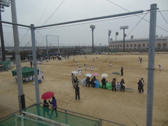 爺婆はもちろん応援部隊。小雨の中、私たちが着いた時には1回の攻撃が終わっていた。私達に気がついた弟が駆け寄ってきて「幹ちゃんがホームランを打った!!」とのこと。残念ながら見ることができなかったが、後でビデオを見せて貰うことにしよう。孫は最近はピッチャーをやっている。試合は4対3で惜しくも負けたが、負けたことで学ぶものも多いはずだ。これからも精一杯応援してやろう。