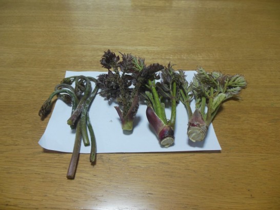 夕食の膳には戦利品の淡路ヶ峠で採った「タラの芽」と西法寺で採った「ワラビ」が並んだ。幸せ!幸せ!