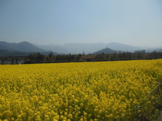淡路ヶ峠を下りた後は、東温市の菜の花まつりへ。一面の菜の花の中で春を満喫した。