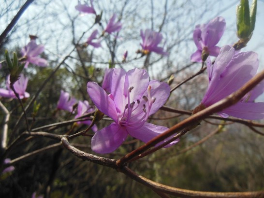 登山道では色々な花が咲いていて目を楽しませてくれた。写真はミツバツツジ。