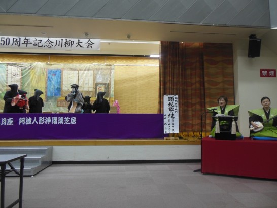 昨日の「創立50周年記念徳島番傘川柳大会」はあわぎんホールで行われた。田中新一主幹、森中恵美子さん、本田智彦さん、菱木誠さん他多くの方々に御挨拶することができた。他県の大会に出かけると多くの収獲がある。アトラクションは阿波人形浄瑠璃。私は初めて観たが、伝統の文化には味があった。徳島の大会は入選50句のみで、特選も無ければ表彰も無い、それはそれでシンプルでいい。私の句