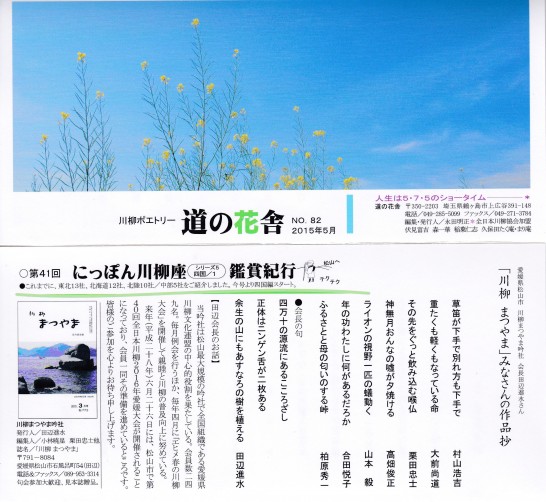 先日埼玉県の「道の花舎」から柳誌が届いた。今回は川柳まつやま吟社の7名の作品を紹介していただいているので再掲させていただきます。