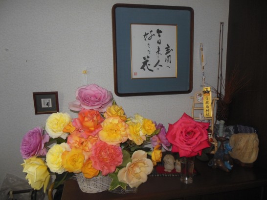 萬翆荘に飾られていたバラは我が家に帰って余生を送ることになる。バラ展は6日間しかないが、その間にもバラは弱ってしまうので、途中で花の入れ替えをしている。バラの盛りは本当に短い。あと何日かは我が家でのんびりその余生を送ってもらいたいと思っている。