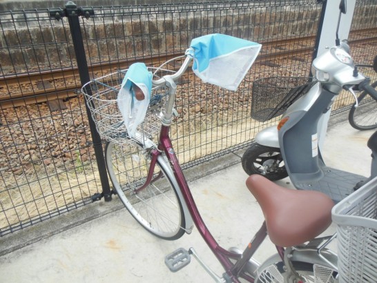 家内はというと買い物やアルバイトでよく使っている。そして注目すべきはハンドルのカバー。百均で買った物だが「日焼け止め」用とのこと。テニスなどで真っ黒になっているので今更とは思うが気休めにはなるだろう。ハンドルにカバーを付けている自転車は少ないので、駐輪場で探す時は分かりやすい。