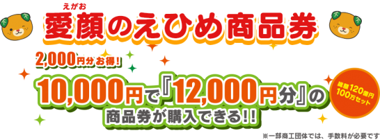 松山市が募集していた愛顔のえひめ商品券に応募していたら先日当選の通知が来た。40000円で48000円分の商品券がいただける。ラッキー!!。