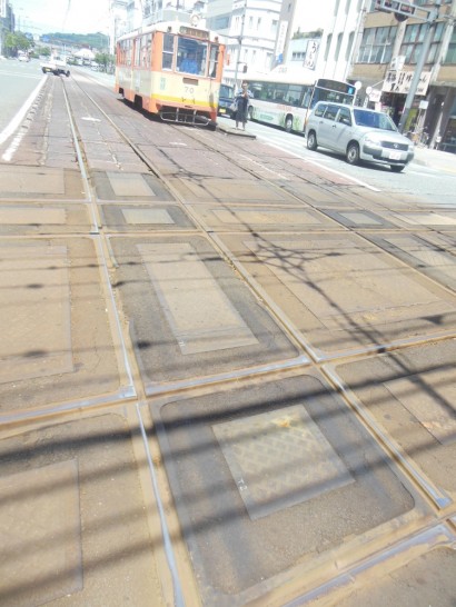 以前このブログでも紹介したと思うが伊予鉄道の郊外線と市内電車が直角にクロスするところがあって、鉄道マニアの人気の地点になっている。ダイアモンドクロスと呼ばれている。
