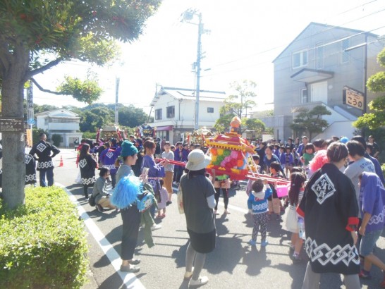 神輿は4台あって、それぞれ大人用、中高生用、小学生用、そして幼児用となっている。幼児用は神輿の天辺にアンパンマンが居て、なんとも可愛らしい。