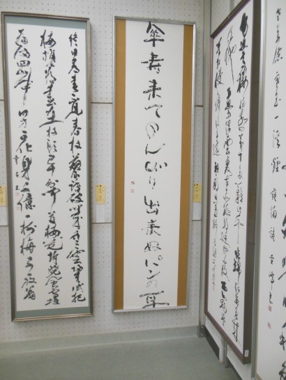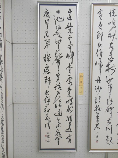 先ずはお目当ての書道。友人の橋本玉蝶さんが特選を取られたという情報を得ていたのでそこへまっしぐら!。写真を撮り、改めてしみじみ眺めてみたが、素人の私には読めない字が殆ど。字として鑑賞するのではなく絵として鑑賞した。