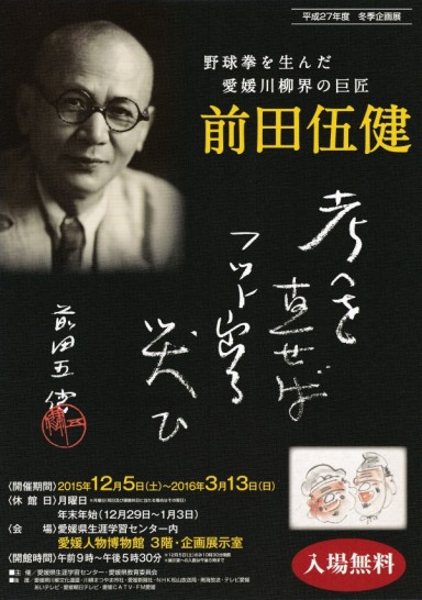 愛媛川柳界の巨匠、前田伍健の企画展が12月5日(土)から来年3月13日(日)まで愛媛県生涯学習センターで開催される。