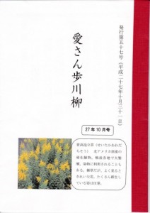 先日届いた「愛さん歩川柳」の表紙は「セイタカアワダチソウ」。いまやどこの空き地でも所狭しと咲き誇っている。子供の頃こんな花は無かった、ブラックバスしかり正に悪貨は良貨を駆逐するのたとえ通りとなっている。