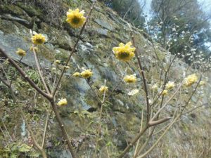 松山城や道後公園の桜ばかり追って来たが、ふと気が付けば、私が住む団地の小さな公園の「ヨウコウ」が満開になっていた。