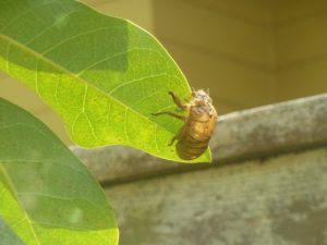 家の周りは蝉しぐれだが、庭の木の葉は蝉の抜け殻が鈴生り状態。