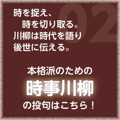 新葉館Web句会は本格的に川柳を嗜む方や愛好者向けの川柳句会に、人気のある時事川柳やユーモア川柳、そして実験的にいろいろな川柳句会を開催し、川柳を作る楽しみ、愛でる楽しみを、プロ・アマ問わず楽しめる本格的川柳句会。